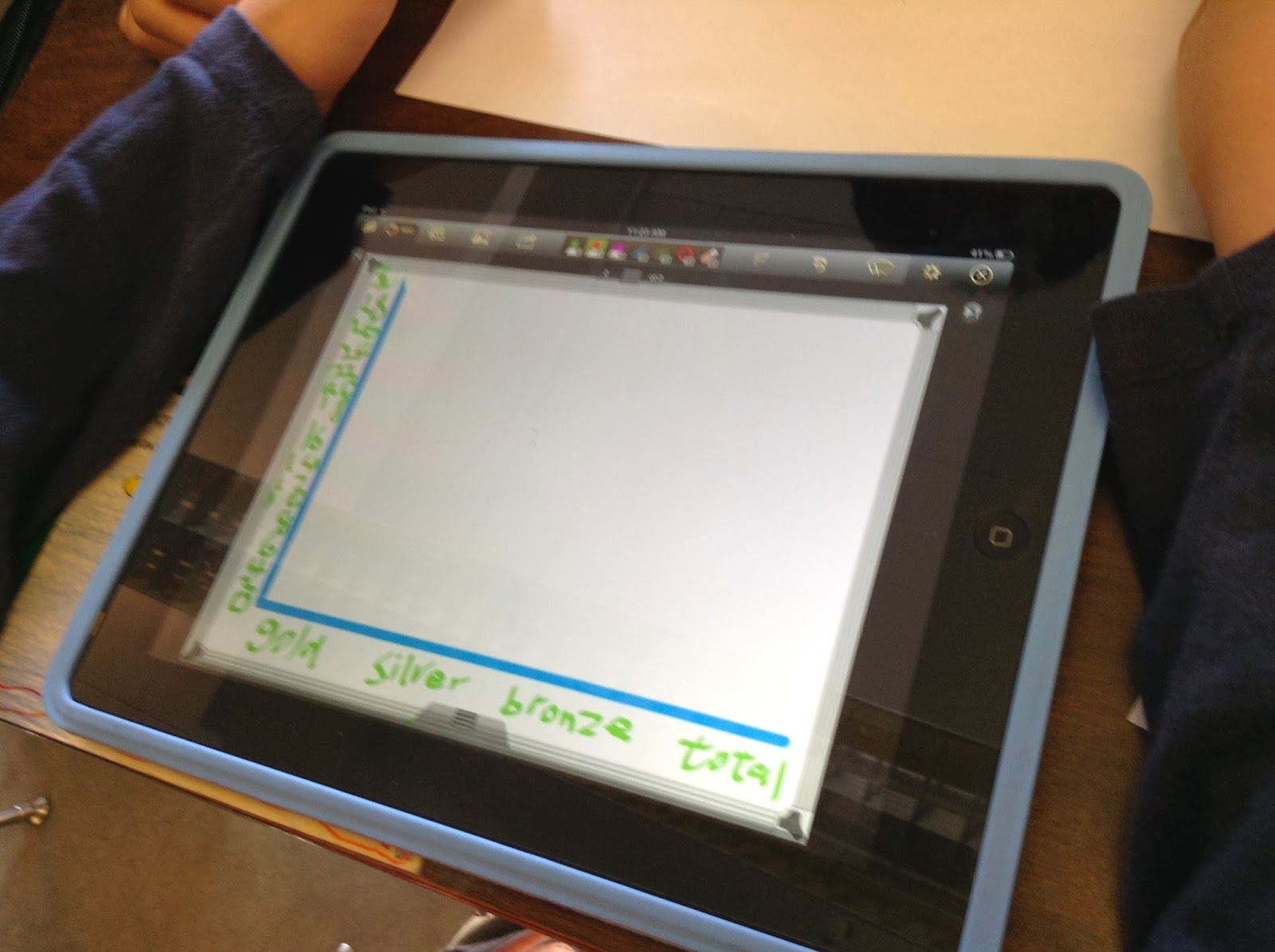 I moved on to Andrew’s grade 7 class and worked through a similar process with the intention of moving to multiplication with decimal numbers. This is where the student’s question came up as I moved from table to table. I took a few seconds to pause and calmly answered.